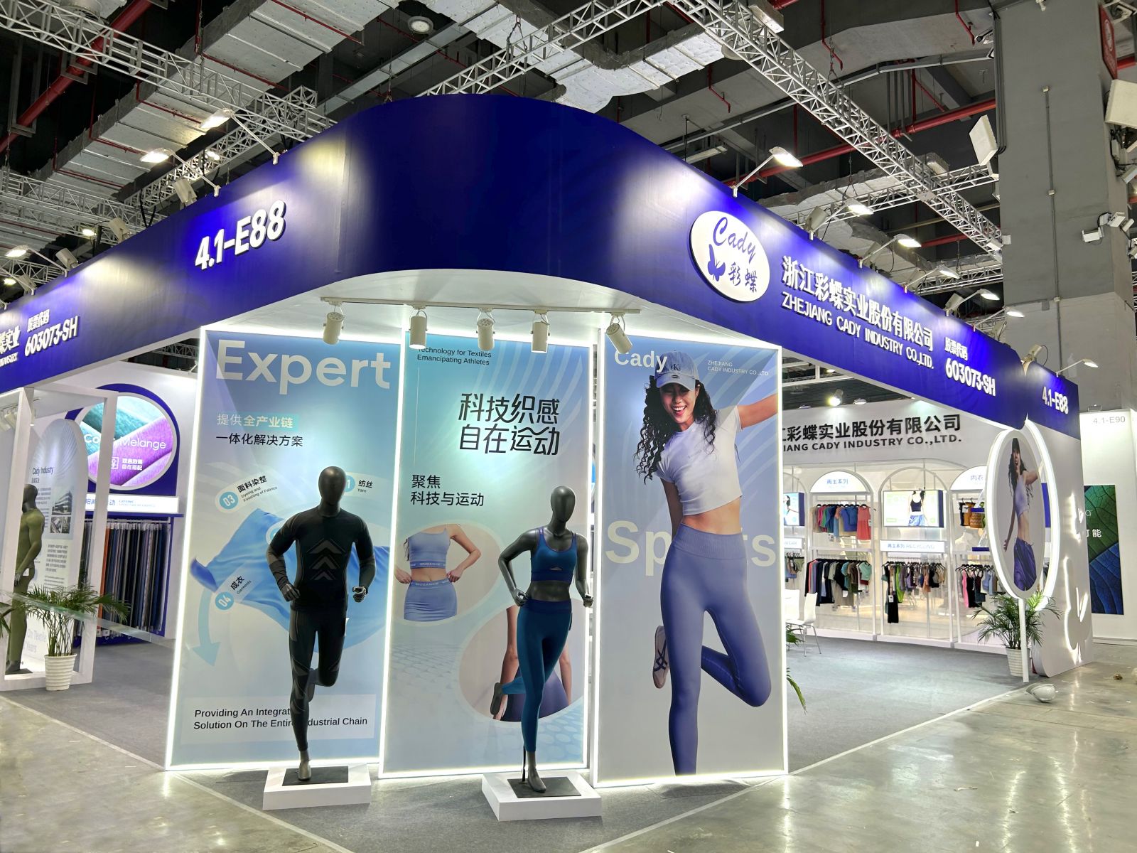 本次展會,彩蝶實業主要推出再生運動、陽離子運動、功能運動、高彈運動等面料系列產品,運動系列、再生系列、內衣